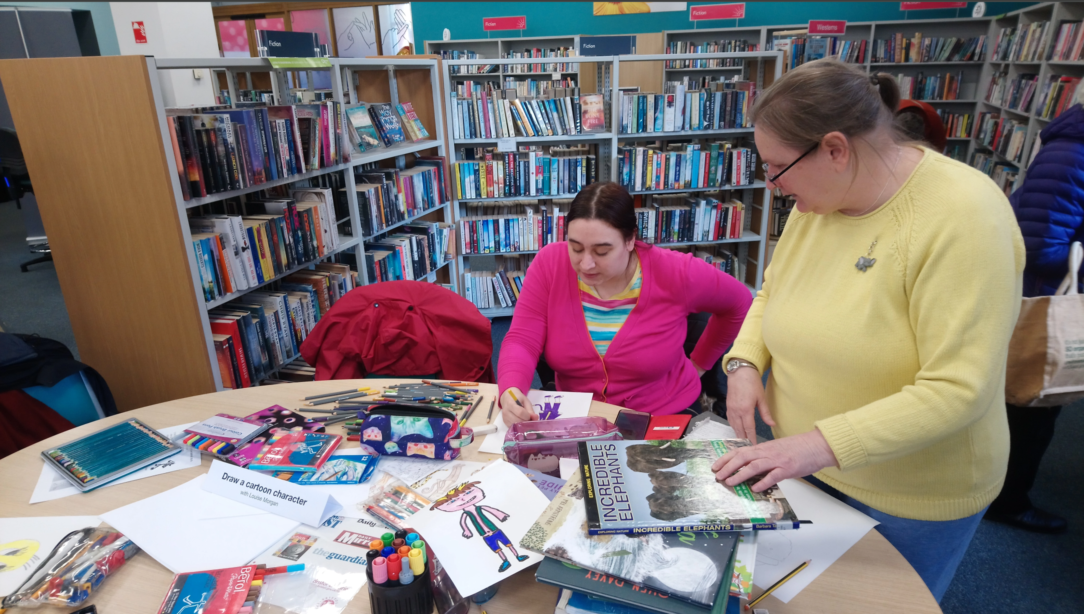 Working with Aim has made a difference in my life because it’s helped me try out new styles of painting, paper etc. and it’s helped me get my art displayed, and meet new people too. What I like most about AIM is that people just like me are getting to draw or paint these characters from cartoons and shows, but also make up new characters too.