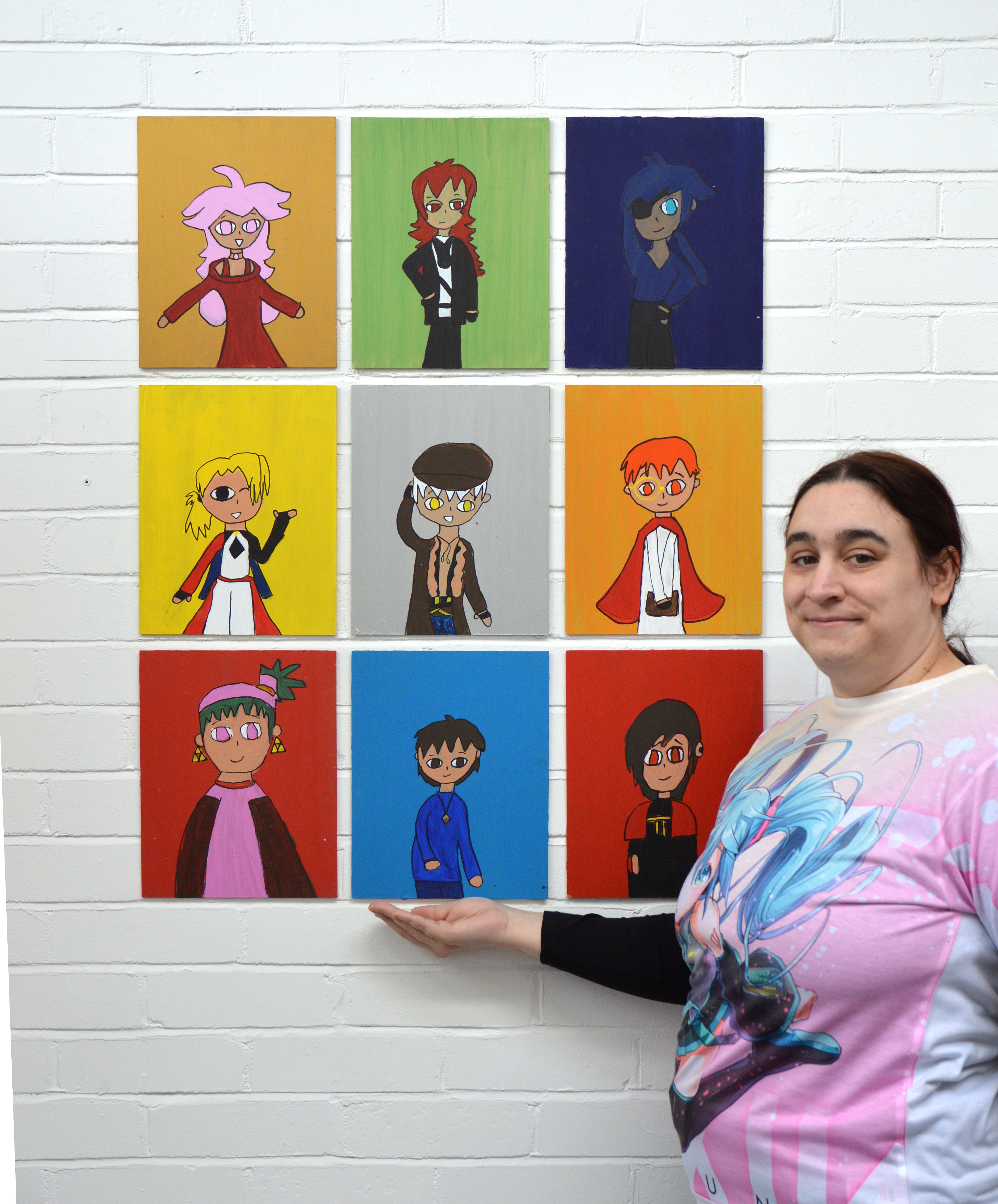 “The work I make is the cartoon and anime kind. I use pens, pencils, colour pencils, and acrylic paints. I’ve been making art since I was in primary school, and my late Grandad Ronald was also an artist. Humour is a key theme in my work, and what I enjoy most about making art is trying new colours and styles.