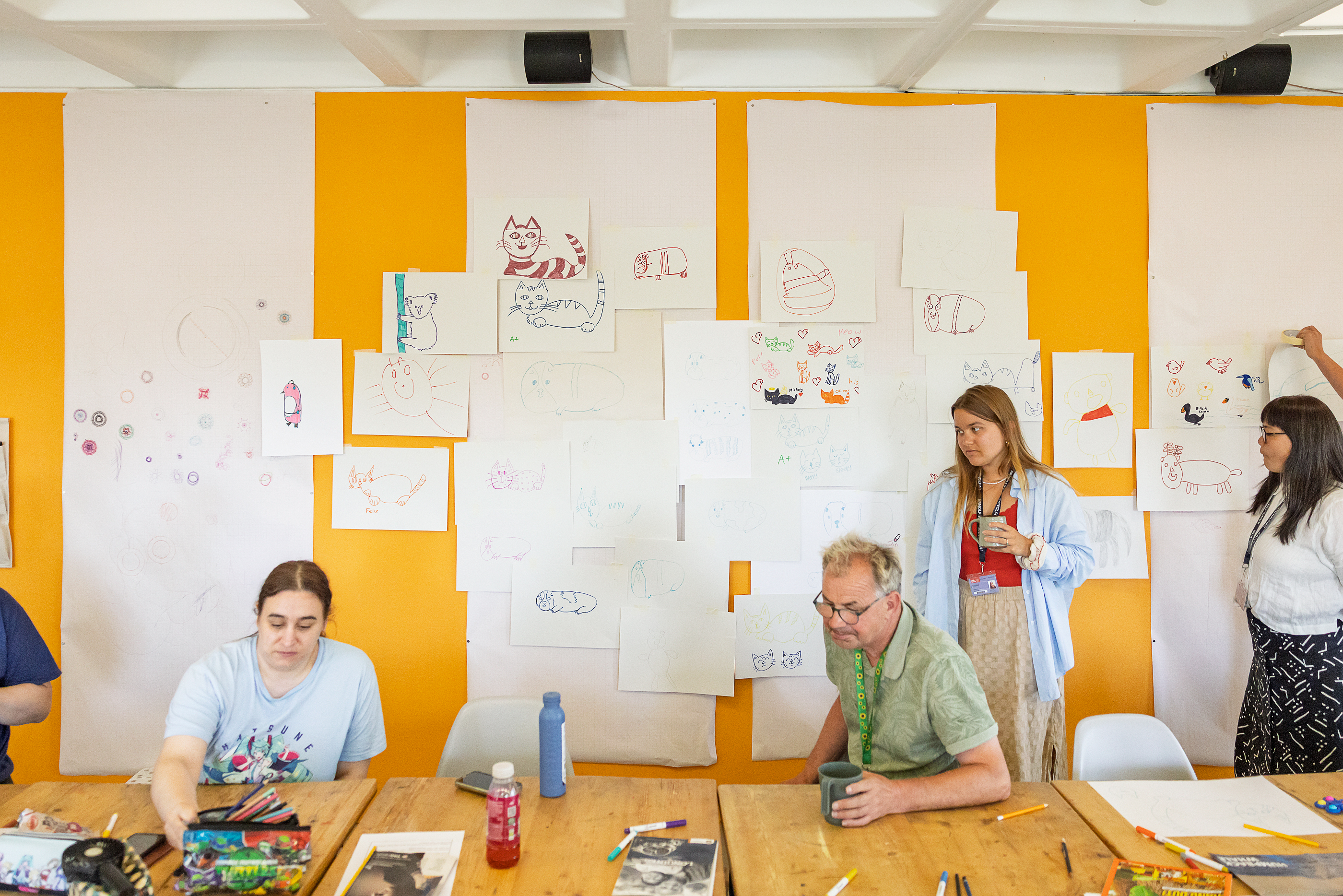 Louise makes illustrations and paintings using bright, vibrant colour, that often centre around people and animals. Her work speaks to the people and animals present in her life, and is often expressive, bold, and experimental with new styles. She is inspired by cartoons and anime, which is influences her work and style.