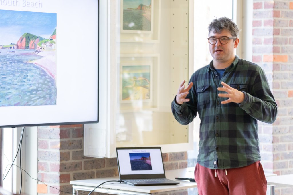 At AIM, he facilitates and teaches painting for artists with learning disabilities, fostering their creativity, emphasising collaboration and community engagement.